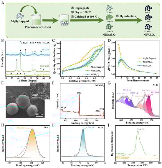 2.1. Comprehensive Characterization and Preparation of Ni/Al2O3 Catalyst for Toluene Pyrolysis
