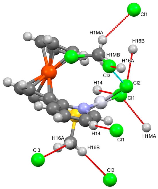 | C16-H16A…Cl3 ii | 0.96 | 2.81 | 3.58 (4) | 138 | |