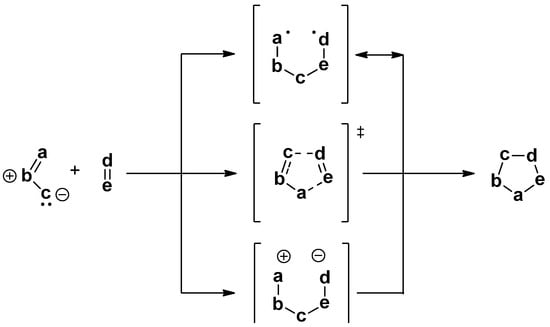 Single-step and stepwise mechanisms of [3 + 2] cycloaddition reactions.