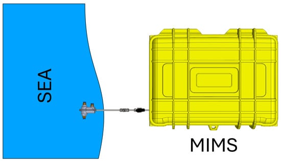The analysis of polycyclic aromatic hydrocarbons (PAHs) and chlorinated hydrocarbons, as well as many other volatile organic compounds (VOCs), and semi-VOCs is commonly performed using commercial techniques such as gas chromatography-mass spectrometry (GC-MS) or high-performance liquid chromatography (HPLC) [,]. These methods are favored for their high accuracy, repeatability, and low limits of detection (LOD). However, despite advantages, these techniques have certain limitations. They are time-consuming, laboratories are often at significant distances from the sampling site, and it is impossible to perform real-time analysis and extensive sample preparation [,]. The demand for fast, reliable, and real-time analysis, as well as the need to overcome the limitations of traditional analytical methods, has led to the development of membrane inlet mass spectrometry (MIMS) [,]. MIMS offers several significant advantages over conventional techniques such as GC-MS and HPLC. The most notable benefit of the MIMS system is its ability to perform analyses without the need for extensive sample preparation, which not only saves time but also reduces the potential for sample contamination and loss []. Furthermore, the MIMS system is particularly well-suited for in situ analysis, making it a versatile tool for field applications. Its portability and battery-powered operation allow for deployment in remote or challenging environments where traditional laboratory equipment would be impractical. This capability ensures that data can be collected and analyzed directly at the sampling site, providing real-time results that are critical for timely decision making in environmental monitoring, industrial process control, and other applications requiring immediate feedback [,]. Thus, MIMS represents a valuable advancement in analytical technology, addressing both the speed and logistical challenges associated with conventional methods. Figure 3 shows a schematic diagram for in situ sampling of seawater using MIMS.