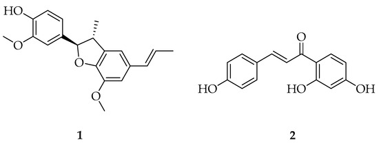 Structures of licarin A (1) and isoliquiritigenin (2).