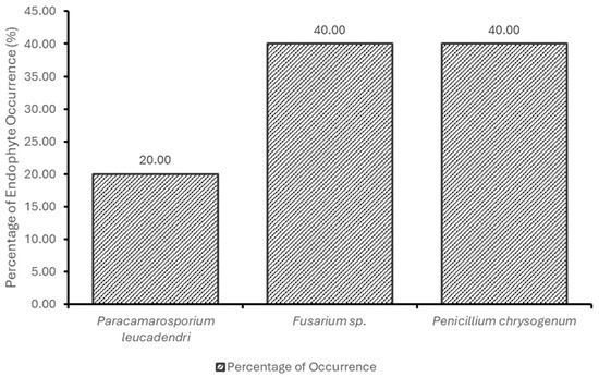 Percentage of occurrence of fungal endophytes in S. mauritianum.