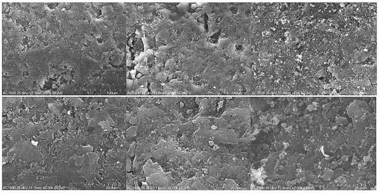An increase in the heat-treatment temperature from 1500 to 1800 °C resulted in no significant changes on the surface of the carbon materials (Figure 1). In the case of AC1500 and AC1800 samples, their surface was porous.