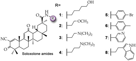 The synthesis of soloxolone amides (1–8) and their physicochemical characteristics are presented in the work [29].