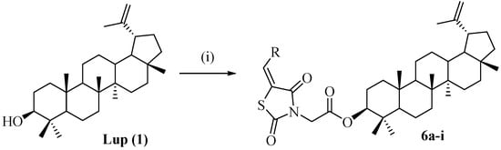 The esterification of lupeol (1) with intermediates 5a–i in the presence of 1-ethyl-3-(3-dimethylaminopropyl)carbodiimide (EDCI) and 4-dimethylaminopyridine (DMAP) led to target compounds 6a–i. The synthetic route is detailed in Scheme 2.