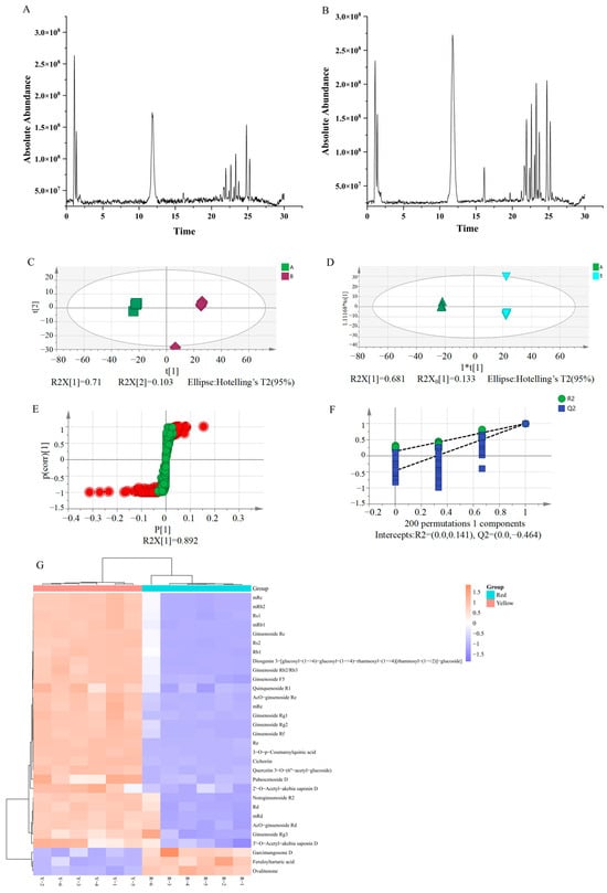 2.1. Differential Compound Analysis of Ginseng Red and Yellow Berries by UHPLC-Q-Exactive-MS