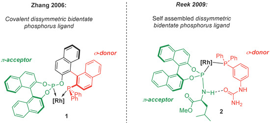 - Breuil, P.-A.R.; Patureau, F.W.; Reek, J.N.H. Singly Hydrogen Bonded Supramolecular Ligands for Highly Selective Rhodium-Catalyzed Hydrogenation Reactions. Angew. Chem. Int. Ed. 2009, 48, 2162–2165. [Google Scholar] [CrossRef]
