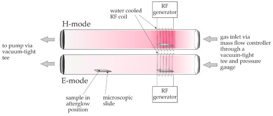 - Zaplotnik, R.; Vesel, A.; Mozetic, M. Transition from E to H mode in inductively coupled oxygen plasma: Hysteresis and the behaviour of oxygen atom density. Europhys. Lett. 2011, 95, 55001. [Google Scholar] [CrossRef]