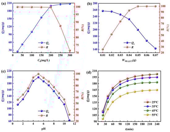 2.3. Influence of Adsorption Conditions on the Adsorption Effect