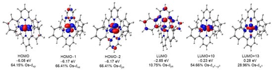 The MO and spin plots were created from the DFT output files and visualized using Chemcraft [63]. The color scheme for atoms (online version) was as follows: Os (turquoise), N (blue), C (grey), O (red), Cl (green), and H (off-white).