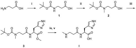 3.1.8. Synthesis of N-Methyl-3-Aminopropanoyl-l-Histidine (I)