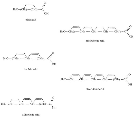 Chemical structures of fatty acids present in Boraginaceae plants.