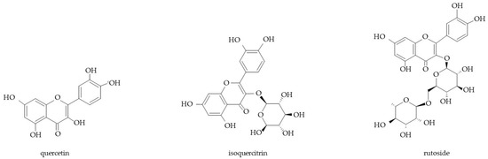 Flavonoids, i.e., polyphenols with a variable phenolic structure, have also been isolated from various organs of Boraginaceae taxa (Figure 5). Quercetin glycosides (rutoside and isoquercitrin) have been reported in Anchusa azurea var. azurea herb [152] and Lithospermum officinale leaves [153].