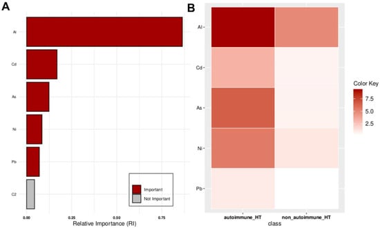 Focusing specifically on HT patients, the data analysis identified Al, Cd, As, Ni, and Pb as significant features for classifying the autoimmune versus non-autoimmune types of HT, as detailed in Figure 3.