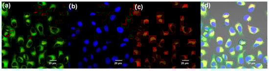 A comparative study between this work and previously reported probes was made (Table S1). Among these fluorescent probes for monitoring Ag+ and Hg2+, some detected Ag+ and Hg2+ through dual chromo- and fluorogenic changes [27,28,29,30], including our proposed probe P, which allowed for easy visual observation. Notably, the construction of a fluorescence-enhanced probe facilitated an improved signal-to-noise ratio and reduced background interference [27,31,32,33]. Additionally, a few probes exhibited a wide quantitation range [28,29,30,32,34] or achieved low nanomolar limits of detection (LOD) for Hg2+ [32]. However, most of these probes required more rigorous testing conditions, and their applicability in living cells was not investigated [28,30,31,34]. Probe P demonstrated high sensitivity for Ag+ and Hg2+ detection, a wide linear range, and a lower detection limit, making it suitable for detecting Ag+ and Hg2+ in cell imaging. However, it must be noted that the water solubility and sensitivity of the probe needed further improvement, which required the optimization of the probe structure.