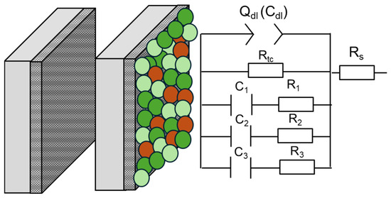 where Y0 and n are the admittance and exponential parameters of the constant phase element, respectively. The effective double-layer capacitance (Cdl) can be calculated from the parameters of Q by applying Brug’s equation [45]: