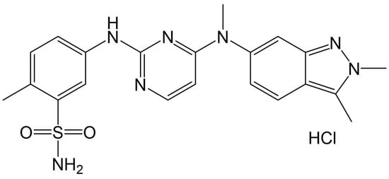 - Deng, Y.; Sychterz, C.; Suttle, A.B.; Dar, M.M.; Bershas, D.; Negash, K.; Qian, Y.; Chen, E.P.; Gorycki, P.D.; Ho, M.Y. Bioavailability, metabolism and disposition of oral pazopanib in patients with advanced cancer. Xenobiotica 2013, 43, 443–453. [Google Scholar] [CrossRef] [PubMed]