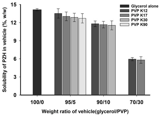 3.5. Solubility of PZH in the PVP and Glycerol (Vehicle) Solution