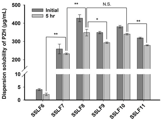 2.5. Effect of PG on the Dispersion Solubility of PZH in the SSLF