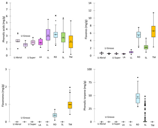 | Phenolic Compounds | RO | TM | SL | LL | LA | LI_Abrial | LI_Grosso | LI_Super |