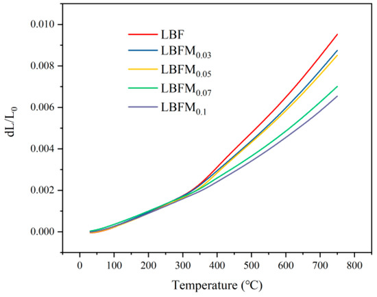 Thermal expansion curve of LBFMx at air atmosphere.
