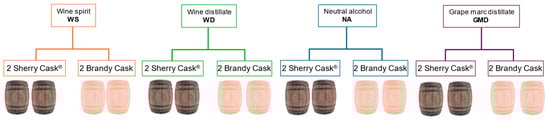 Both the distillates and the casks were supplied by Bodegas Fundador S.L.U., a winery that belongs to the Protected Geographical Indication “Brandy de Jerez” [].
