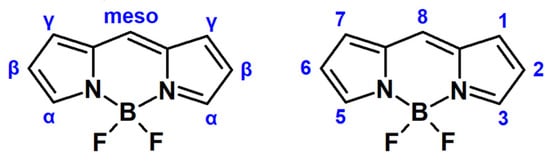 Chemical structure of BODIPY dyes with atoms positions and numbering.