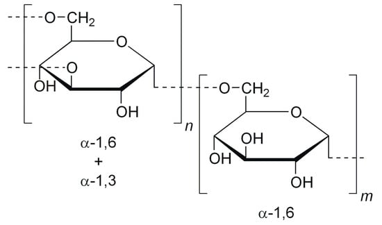 - Díaz-Montes, E. Dextran: Sources, Structures, and Properties. Polysaccharides 2021, 2, 554–565. [Google Scholar] [CrossRef]