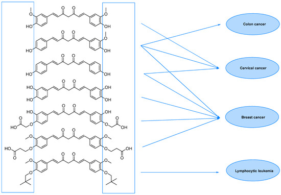 In this chapter, selected curcumin derivatives with potential activity against cancer are discussed. In the following subsections referring to several types of cancers, studies on curcuminoid derivatives are presented (Figure 2).