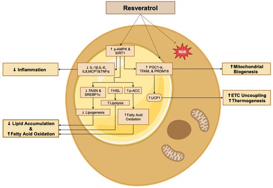 Chicago/Turabian StyleTerzo, Matthew, Michael Iantomasi, and Evangelia Tsiani. 2024. "Effects of Resveratrol on Adipocytes: Evidence from In Vitro and In Vivo Studies" Molecules 29, no. 22: 5359. https://doi.org/10.3390/molecules29225359