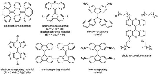 Bis(tricyclic) aromatic enes (BAEs) are attracting increasing interest as key frameworks for the development of functional organic materials. This is because BAEs exhibit unique electronic behavior and stimuli-responsiveness originating from their cross-conjugated electronic structures and the flexible conformations of the overcrowded alkene moieties. To date, several types of BAE-based functional materials have been developed that exhibit electrochromism [1,2], mechanochromism [3,4], thermochromism [5,6,7,8,9], charge transport [10,11,12,13,14,15], and photosensitivity [16,17,18,19,20,21,22] (Figure 1). However, there are few BAEs that exhibit efficient fluorescence, be that in a solution, in the solid state, or in a polymer film [23,24,25,26]. Organic luminophores that exhibit efficient solid-state emission are essential for the advancement of organic light-emitting diodes [27,28,29], organic light-emitting field-effect transistors [30,31,32,33], and organic solid-state lasers [34,35,36,37]. Furthermore, luminescent solar concentrators (LSCs) have received renewed attention in the field of renewable energy-generating devices [38,39,40,41,42,43,44]. Since LSCs consist of a transparent polymer waveguide, such as poly(methyl methacrylate) (PMMA), doped with a fluorophore, organic luminophores that exhibit efficient fluorophores in polymer film are very attractive as dopants for LSCs. This presents a significant opportunity to explore and develop highly fluorescent BAEs that efficiently fluoresce in the solid state and in a polymer film, expanding their potential as versatile multifunctional optoelectronic materials.