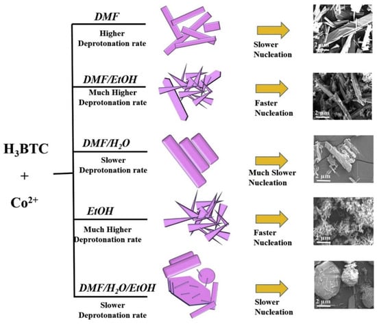 Schematic representation for the preparation of Co-MOFs under different conditions. Reproduced with permission [73].