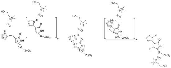 Zinc is not only one of the chemical elements capable of performing important biological functions, but it is also involved in various chemical processes. This is due to its Lewis acid nature, which favors higher substrate reactivity, selectivity, and mild reaction conditions. Therefore, ZnCl2 has been used in the formation of Lewis acid deep eutectic solvents (LADESs), which have been used as solvents and catalysts in various chemical reactions, for example, in the acylation reactions of anilines [22], synthesis of indoles [23], esterification of carboxylic acids [24], and Friedel–Crafts alkylations [25]. The findings of Zhao in 2013 are particularly pertinent to our research, as they describe the Michael addition of pyrroles to maleimide in the presence of ZnCl2 or AlCl3 catalysts, using 1,2-dichloroethane at reflux [26].
