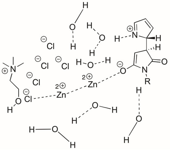 Schematic view of intermediate 1 for the reaction between pyrrole, maleimide, ChCl, and the zinc zincate species.