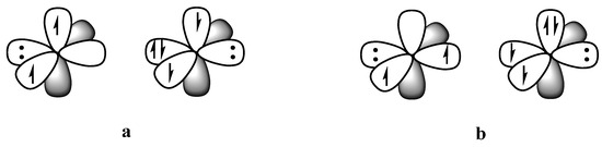 Non-bonded determinants with dative electrons in the σ (a) and π (b) positions.