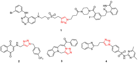 Structures of compound 1, compound 2, compound 3, and compound 4 (the red is 1,2,3-Triazole structure).