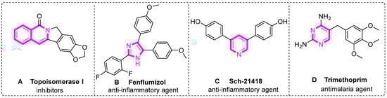 The applications of transition metal-catalyzed cyclization reactions span diverse fields, from the synthesis of natural products and pharmaceuticals to the preparation of functional materials and organic electronics. For instance, these processes have been indispensable in synthesizing drug molecules A–D (Scheme 2) [12,13,14,15]. The efficiency and selectivity of these transformations make them invaluable in the total synthesis of complex natural products, where constructing intricate ring systems is often crucial [16,17,18,19,20]. Additionally, the ability to fine-tune the catalytic system has led to increasingly selective and chemoselective cyclization reactions, allowing for the formation of specific cyclic scaffolds even in the presence of multiple reactive functional groups. Looking to the future, the advancement of transition metal catalysis in organic synthesis promises to unlock new levels of molecular complexity and diversity [21,22,23]. As researchers explore novel catalytic systems, ligand designs, and reaction conditions, the scope and capabilities of metal-catalyzed cyclization reactions will continue to expand, driving further the progress made in synthetic organic chemistry.