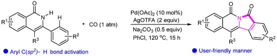 Pd-catalyzed oxidative cyclocarbonylation of isoquinolones with CO.