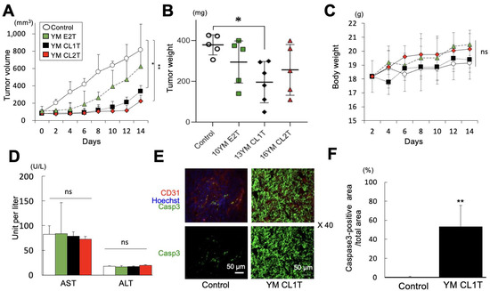 2.4. YM CL1T Administration Inhibited Tumor Growth In Vivo
