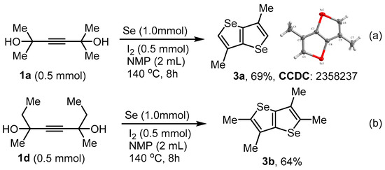 Chicago/Turabian StyleFeng, Yingqi, Xuelin Zhang, Ziqing He, Miaoshan Zhao, Lu Chen, Yibiao Li, and Xiai Luo. 2024. "Expedient Synthesis of Substituted Thieno[3,2-b]thiophenes and Selenopheno[3,2-b]selenophenes Through Cascade Cyclization of Alkynyl Diol Derivatives" Molecules 29, no. 23: 5507. https://doi.org/10.3390/molecules29235507