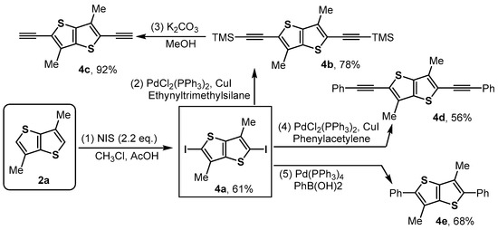3.4. Synthesis of 2,5-Diiodo-3,6-dimethylthieno[3,2-b]thiophene 4a
