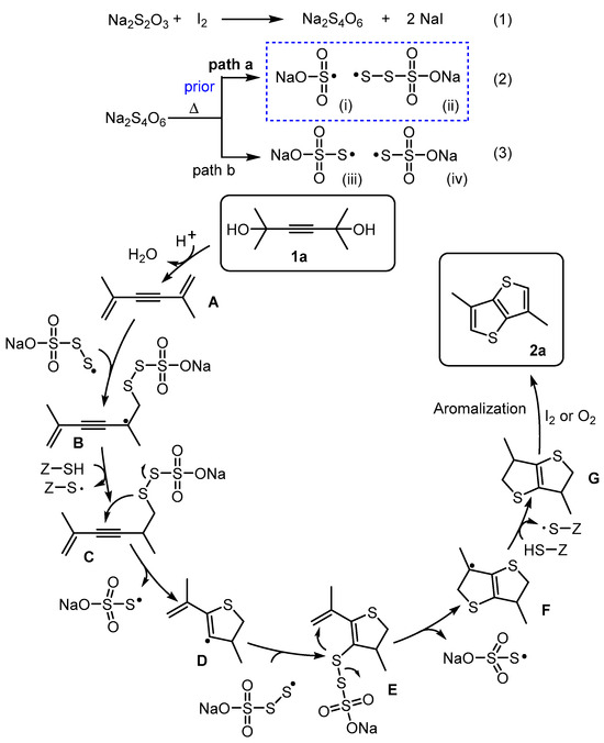 - Zhang, G.; Yi, H.; Chen, H.; Bian, C.; Liu, C.; Lei, A. Trisulfur Radical Anion as the Key Intermediate for the Synthesis of Thiophene via the Interaction between Elemental Sulfur and NaOtBu. Org. Lett. 2014, 16, 6156–6159. [Google Scholar] [CrossRef] [PubMed]
