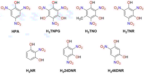 The structures of polynitrophenols used as explosive materials are presented in Figure 4.
