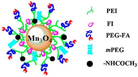 Structure of the Mn3O4-PEI-Ac-FI-mPEG-(PEG-FA) NPs. Adapted from Ref. [96].
