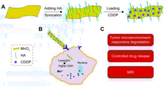 - Hao, Y.; Wang, L.; Zhang, B.; Li, D.; Meng, D.; Shi, J.; Zhang, H.; Zhang, Z.; Zhang, Y. Manganese dioxide nanosheets-based redox/pH-responsive drug delivery system for cancer theranostic application. Int. J. Nanomed. 2016, 11, 1759–1778. [Google Scholar]