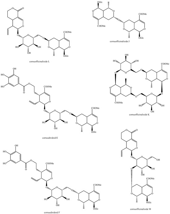 - Li, Y.-C.; Yang, J.; Li, J.-K.; Liang, X.-H.; Sun, J.-L. Two new secoiridoid glucosides from the twigs of Cornus officinalis. Chem. Nat. Compd. 2016, 52, 647–650. [Google Scholar] [CrossRef]