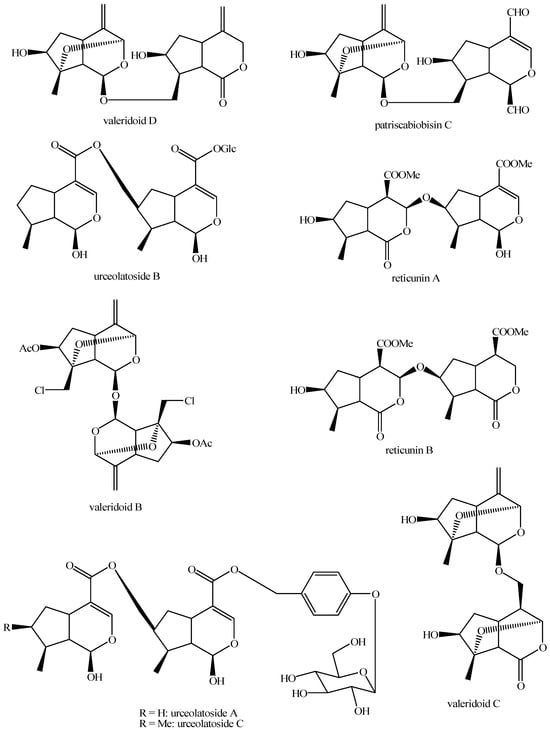 In the literature, there is no specific review paper on bis-iridoids, whereas several review papers have dealt with the topic of iridoids in general on several aspects [1,2,3,4,5,7,8,9,10].