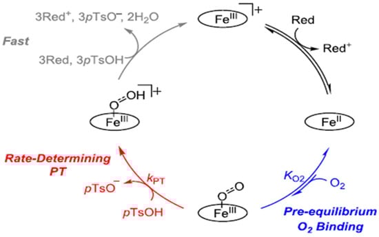 Proposed mechanism for oxygen reduction catalyzed by FeIITPP. Reproduced from Ref. [] with permission from Journal of the American Chemical Society, copyright 2019.