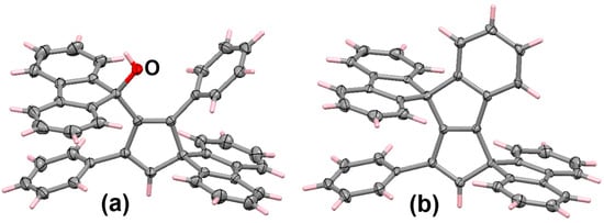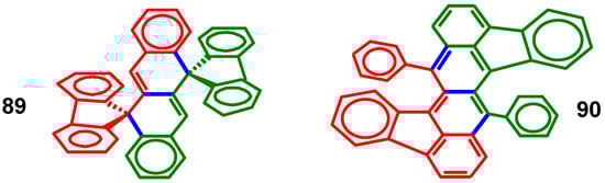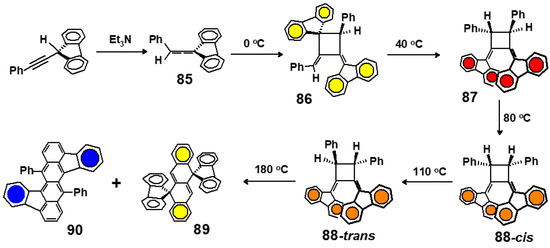 - Banide, E.V.; Ortin, Y.; Seward, C.M.; Müller-Bunz, H.; Harrington, L.E.; McGlinchey, M.J. Sequential formation of yellow, red, and orange 1-phenyl-3,3-biphenylene-allene dimers prior to blue tetracene formation: Helicity reversal in trans-3,4-diphenyl-1,2-bis(fluorenylidene)cyclobutane. Chem. Eur. J. 2006, 12, 3275–3286. [Google Scholar] [CrossRef]