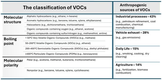 - Li, X.; Zhang, L.; Yang, Z.; Wang, P.; Yan, Y.; Ran, J. Adsorption Materials for Volatile Organic Compounds (VOCs) and the Key Factors for VOCs Adsorption Process: A Review. Sep. Purif. Technol. 2020, 235, 116213. [Google Scholar] [CrossRef]